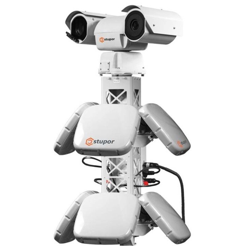 Стационарный комплекс "СТУПОР ШТОРМ" включает в себя несколько систем, направленных на точное обнаружение, идентификацию БВС, а также блокирование сигналов в каналах управления и передачи информации. Обеспечивает непрерывный контроль воздушного пространства, поиск и обнаружение несанкционированного БВС. Способен влиять на каналы управления, предотвращения дальнейшего полета в защищённую зону.