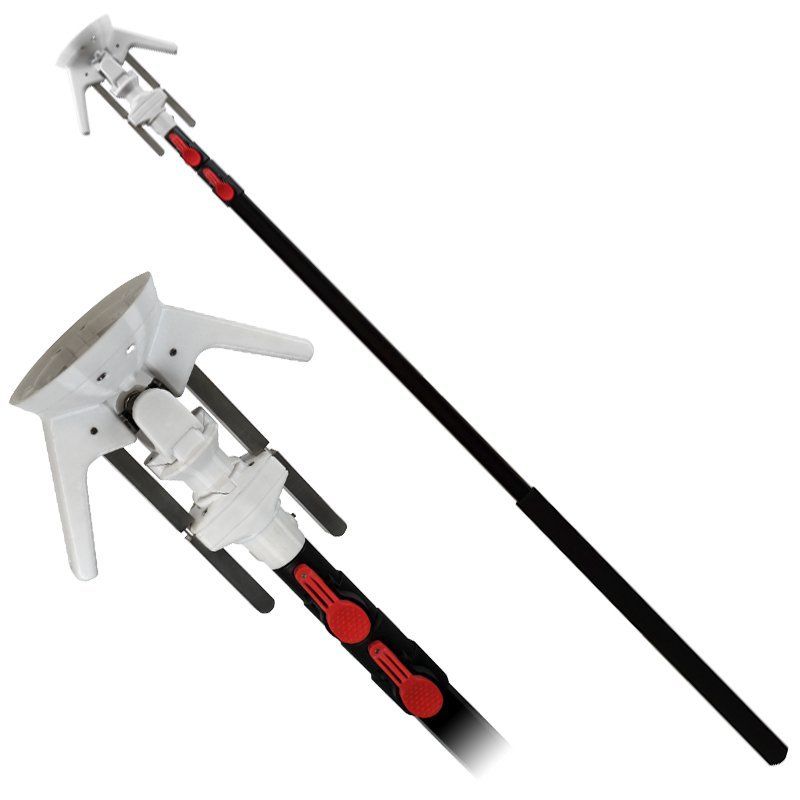 Съёмник для эксплуатационного размещения в базу и демонтажа пожарных извещателей ДИП-34А, С2000-ИП, С2000-ИПГ, СОнет и других в аналогичном корпусе без необходимости проведения работ на высоте (на потолок до 5,5 метров без применения лестницы); t-раб.-10…+50°C; штанга 1.4…3.6 м, 110х195х62 мм (держатель).