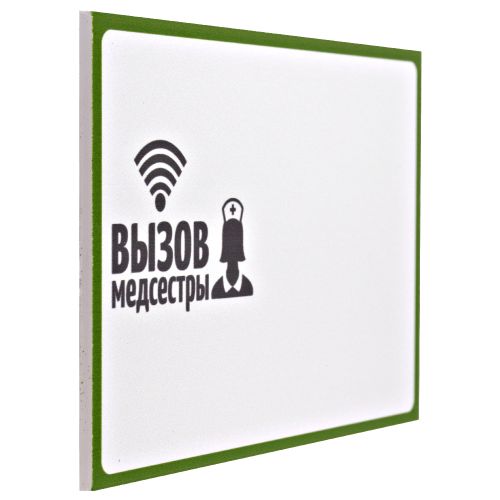 — Табличка привлекает внимание пациентов к кнопке вызова медперсонала.