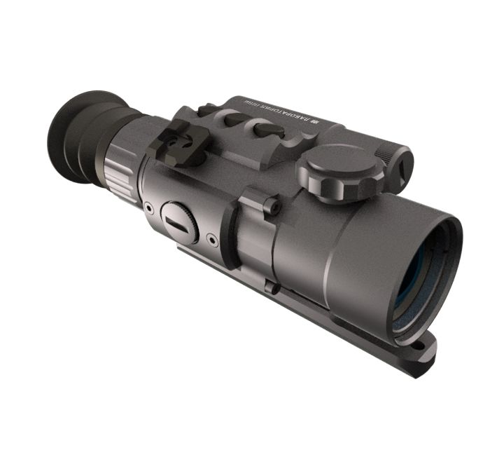 Прибор оснащен пятью цветовыми палитрами, в том числе и для интеллектуального определения важных объектов. Масштабирование направляет изображение в самый центр прицельной марки. Особенности: