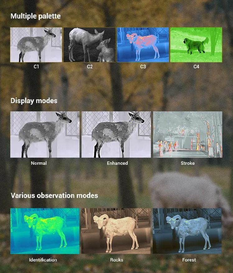 Конструкция со встроенным дальномером лазерного типа определяет расстояние до излучающей тепло цели с точностью до +1 м в радиусе 1000 метров. Пользователь может работать в одном из трех доступных режимов. Конструктивные особенности тепловизора: