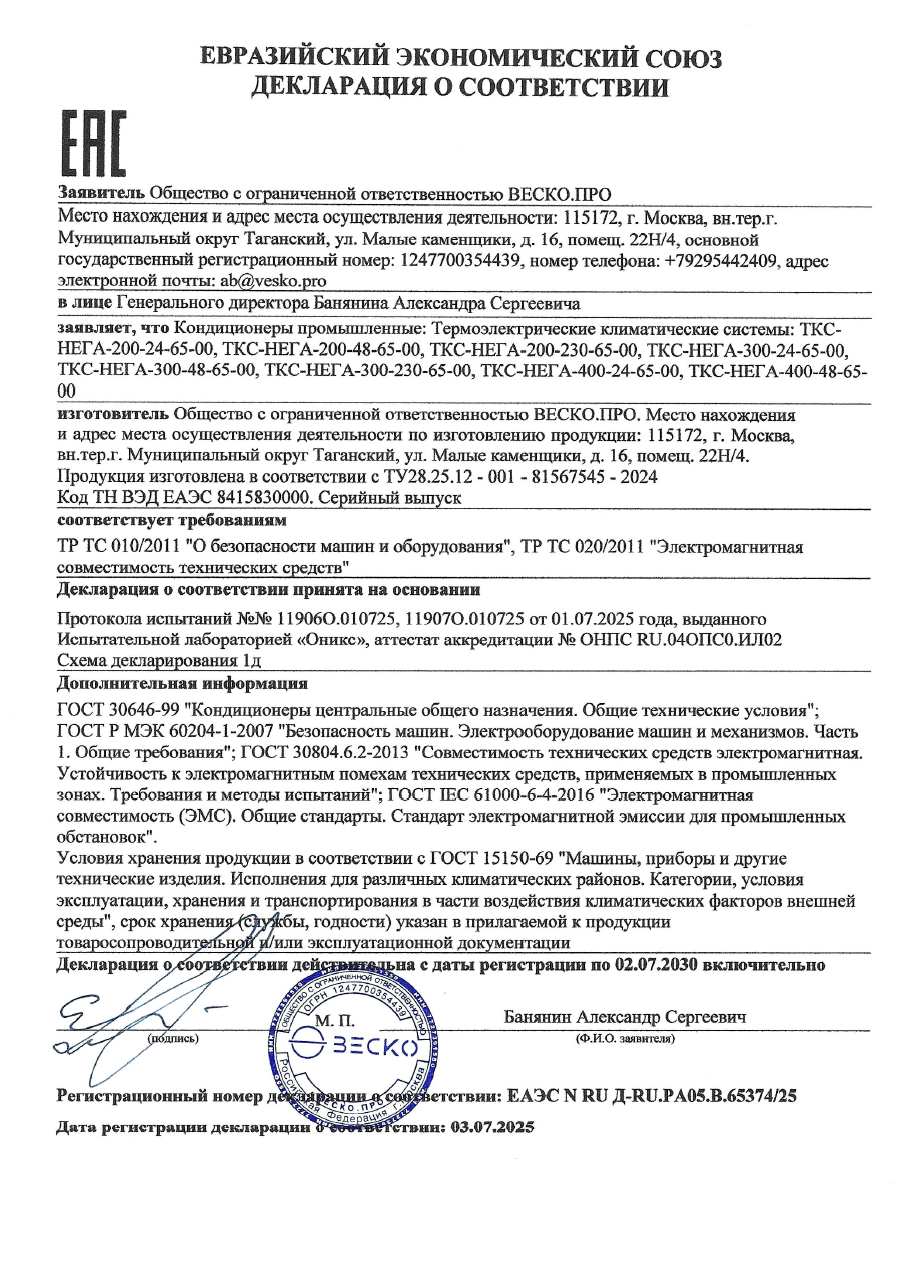 Термоэлектрические кондиционеры ВЕСКО — решение для охлаждения
