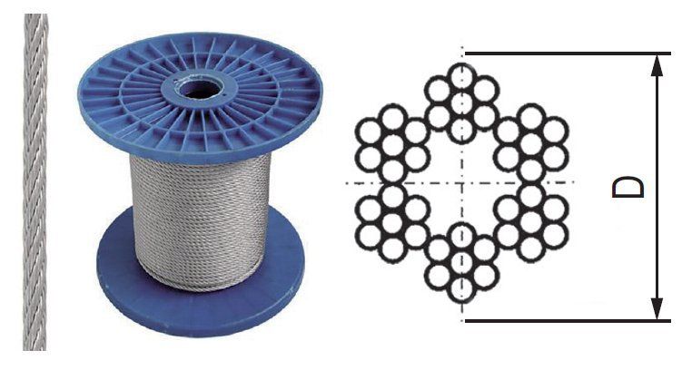 Трос стальной оцинкованный, толщина 4 мм, DIN 3055, рабочая нагрузка 192 кг