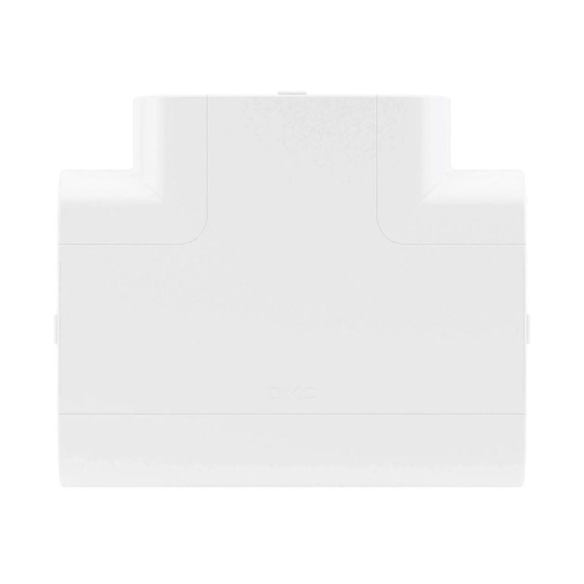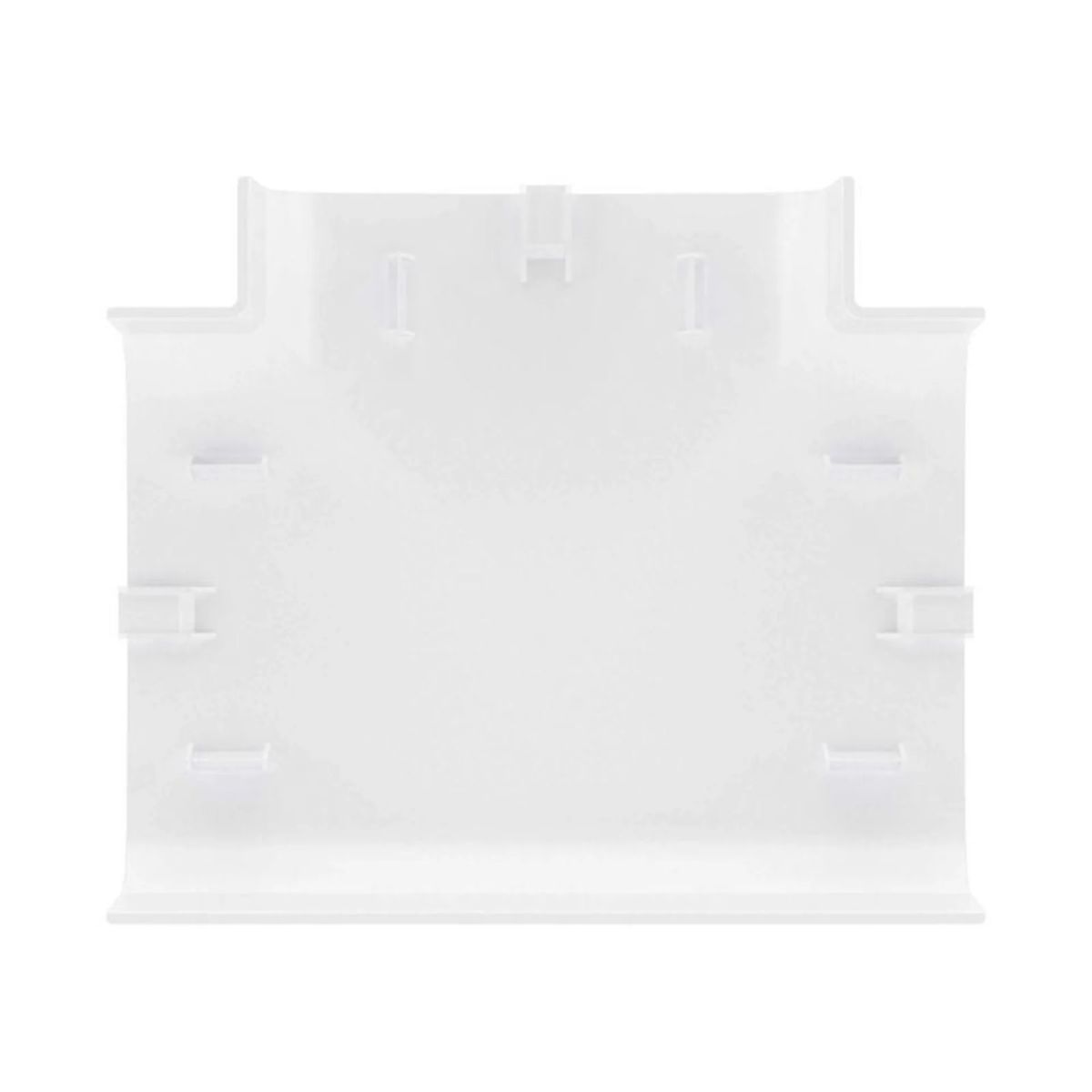 Тройник (Т-образный отвод). Назначение: декоративное оформление мест Т-образного соединения кабельных коробов. Характеристики: материал накладки – АБС-пластик; материал базы и разделителей – ПП. Комплект поставки: внешняя декоративная накладка; внутренняя база с разделителем. Типоразмер 110х50. Цвет белый
