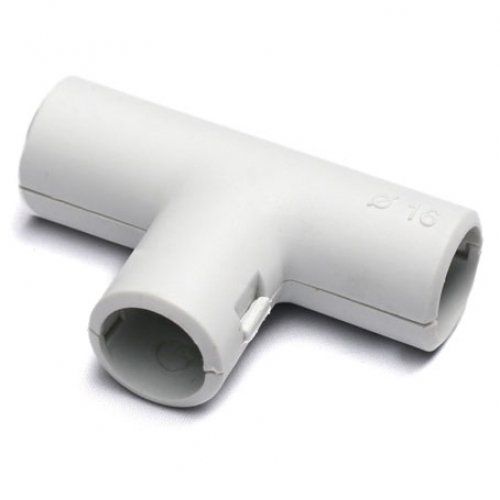 Предназначен для Т-образного соединения трех жестких труб, рекомендуется для использования в сухих помещениях.