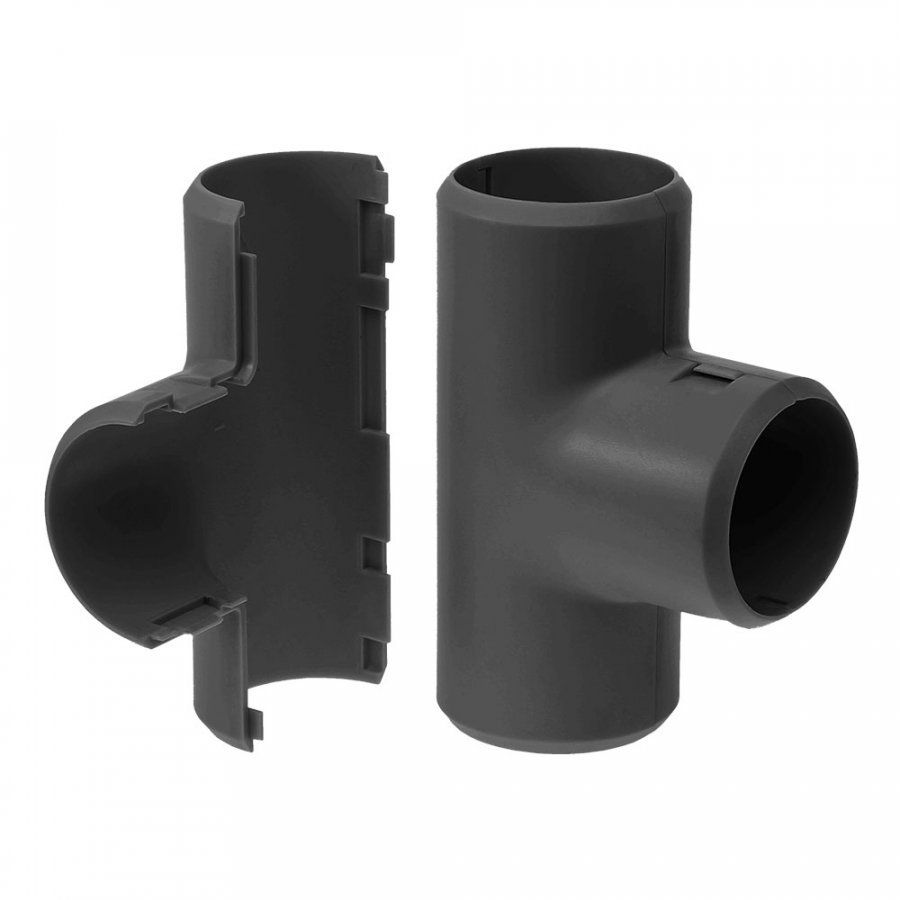 Предназначен для соединения гофрированных труб или гладких труб из пластика, образуя Т-образное ответвление, что позволяет придать более эстетичный внешний вид местам соединения. Состоит из двух частей соединяющихся друг с другом. Благодаря разъёмному корпусу, имеет возможность установки на уже смонтированную трассу.