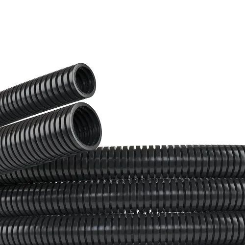 Индустриальная гофрированная труба из полиамида (серия F2), без протяжки. Диаметр 12 мм. Цвет черный. Температура монтажа и эксплуатации от -40 до +105 градусов по Цельсию. ТУ 2247-024-47022248-2009. Экстремальная ударная прочность. Высокая гибкость. Стойкость к агрессивным жидкостям и газам. Стойкость к ультрафиолету. Широкий диапазон монтажных и эксплуатационных температур. Уникальный профиль. Отсутствие галогенов. Условия монтажа: открытая прокладка в условиях повышенных нагрузок (динамических, вибрационных, в агрессивных средах). Используется для защиты проводов и кабелей от механических повреждений, пыли и влаги, агрессивного воздействия жидкостей и газов при прокладке внутри и снаружи корпусов индустриального оборудования, а также в робототехнике и транспорте.