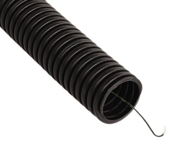 Труба ПНД гибкая гофрированная с зондом, тяжёлая, D-внешн.32 мм, D-внутр. 24,3 мм, цвет черный, t-раб. -40...+90°C, бухта 25 м