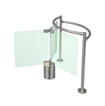 Полуростовой турникет с электромоторным приводом створки и быстро реагирующим электрозамком, предназначен для установки в местах с большим потоком людей. Работает быстро и бесшумно, как от кнопочного пульта (в комплекте), так и в составе СКУД.