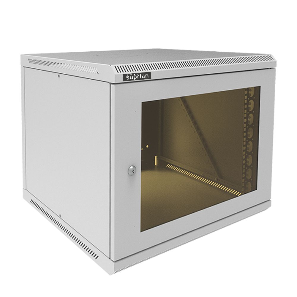 Шкаф телекоммуникационный настенный 19"; 9U; дверь стекло; полезная глубина 535 мм; съемные стенки; распределенная нагрузка 70 кг; цвет серый; IP20; 600х600х500 мм.