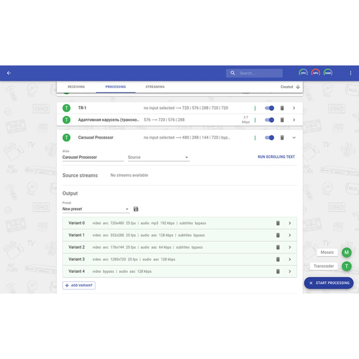 UDP, HLS, DASH, HTTP Progressive, RTMP Publish, SRT