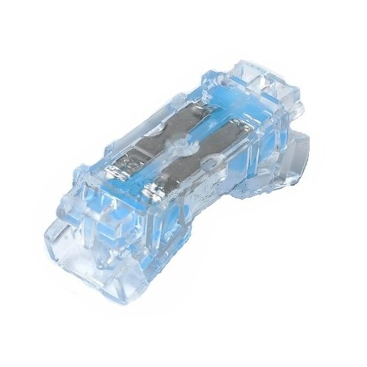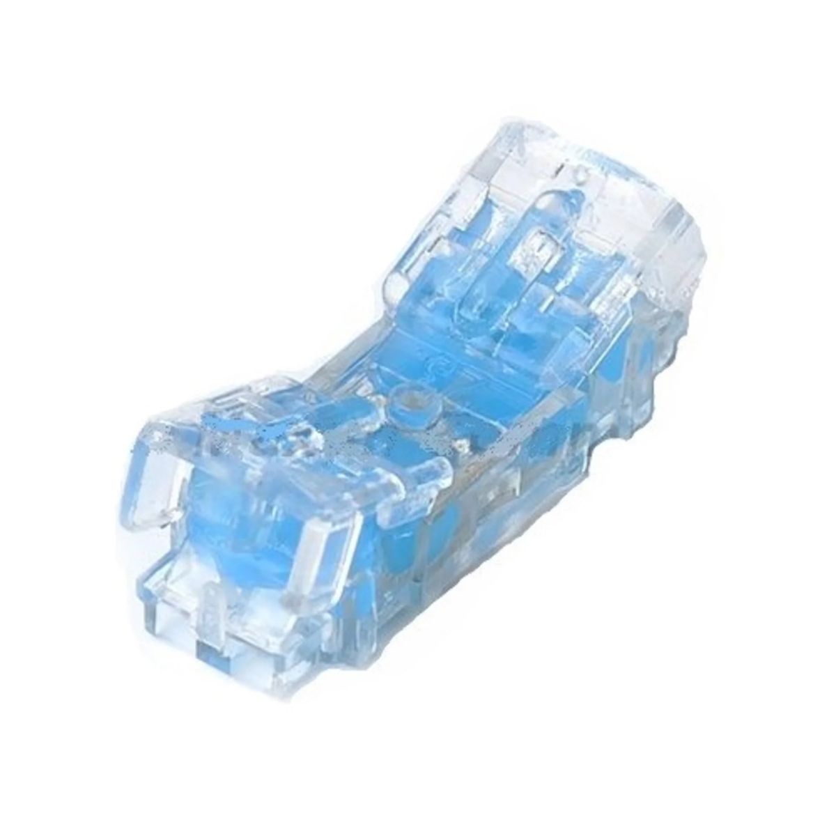 Соединитель обладает простым и быстрым монтажом: 4 проводника заводятся в корпус, фиксируются нажатием двух крышек. При закрытии крышки корпуса прорезка изоляции проводов и их последующее соединение путем внедрения в медную часть.
