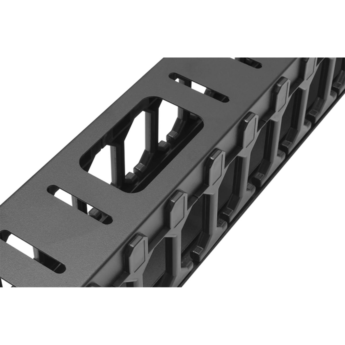 Вертикальный кабельный организатор SNR-VR-ORG-2-42 высотой 42U (187см) чаще всего применяется в шкафах и стойках высотой 42U и 47U шириной 800мм. для прокладки вертикальной кабельной инфраструктуры. Может использоваться как в 19" так и в 10" конструктиве.
