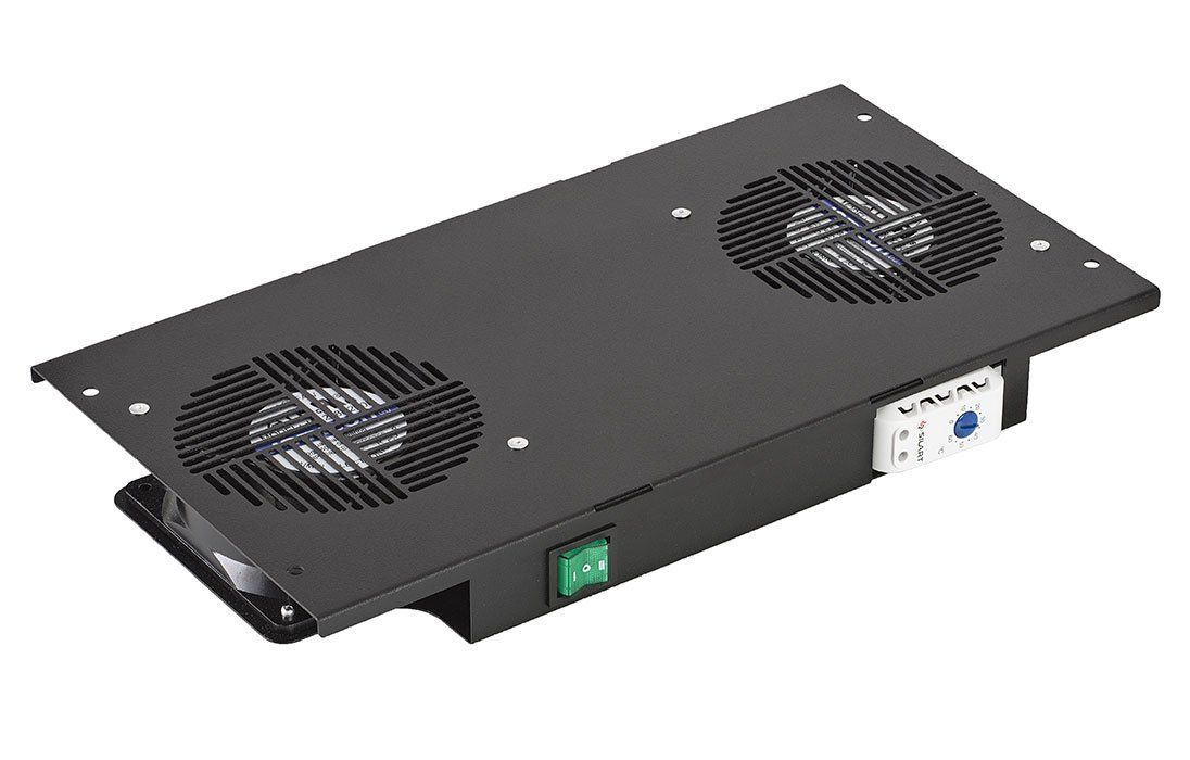 Вентиляторный модуль потолочный , 2 вентилятора с термореле, цвет чёрный.