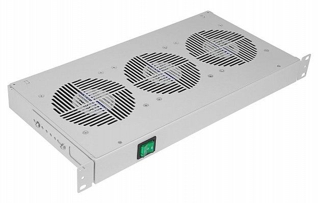 Вентиляторный модуль 19", 1U, 3 вентилятора с термодатчиком +35°С, глубина 210 мм, серый, DC 48 В, 60Вт.