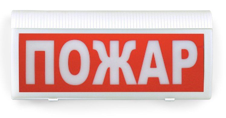Предназначен для оповещения о пожарной тревоге на объекте. При пожаре оповещатель подсвечивает табло с надписью «ПОЖАР» мигающим белым светом, информируя о произошедшем возгорании и необходимости покинуть помещение. Дополнительно оповещатель сигнализирует о пожарной тревоге с помощью сирены.