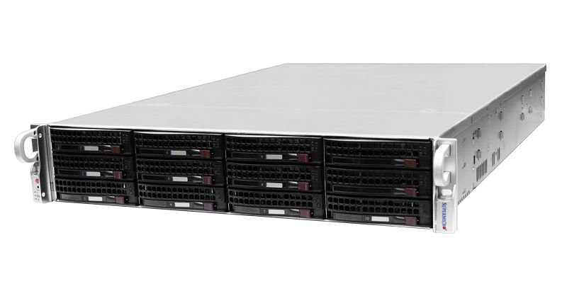Видеосервер до 75 видеокамер, 2U монтаж в стойку 19", HDD 48 Тb, SSD 240 Gb, 1хVGA, 12x3.5" корзин Hot-Swap, 2хLAN 10G бит/с + IPMI 2.0 KVM с выделенным LAN-портом, AC 220В, 514 Вт,+10...+35 °C, 437x89x630 мм. Предустановленное ПО: «Орион Видео Лайт. Приобретаются отдельно: Центральный Сервер Орион Про, Администратор базы данных Орион Про, Монитор Орион Про, Генератор отчетов Орион Про.