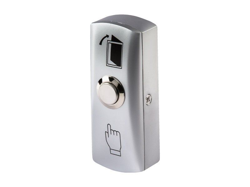 Металлическая кнопка, накладная; тип контактов: нормально открытый (НО), ток коммутации 3А, до 36В DC, панель - сплав цинка, кнопка - нержавеющая сталь, -40...+55 °С, 80х30х22мм.