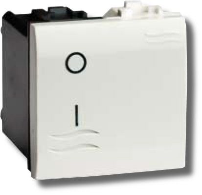 Выключатель двухполюсный, 2 модуля серии "BRAVA", номинальное напряжение 250 В, номинальный ток 16 А, габаритные размеры 43х43 мм, цвет белый