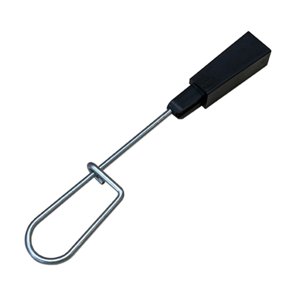 - Зажим VS-15 состоит из пластикового корпуса, устойчивого к морозам, полимерного клина со стальной оцинкованной размыкаемой петлей.